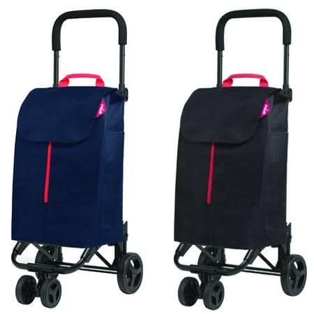 cm.51x41x102h. - portata max Kg.30 - peso Kg.3,44 - struttura in acciaio con particolari in resina ad alta resistenza - dispone di 3 ruote gommate - consente di salire i gradini - sacca estraibile in tessuto lavabile - gancio per carrello del supermercato - sistema Easy-click per una facile rimozione della borsa